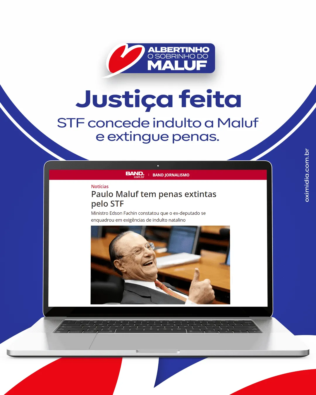 Albertinho Sobrinho do Maluf é um político de perfil conservador e conta com os trabalhos da Oximídia em suas campanhas. A Oximídia é uma agência especializada em campanhas políticas de alto nível, atuando em cenários nacionais, estaduais e municipais. Também desenvolve pré-campanhas estratégicas e ações voltadas ao fortalecimento da imagem pessoal, sempre com ética, inovação e resultados consistentes.